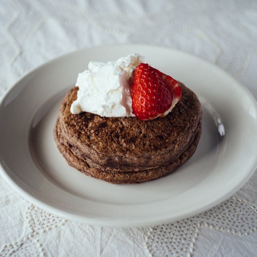 動物性の食材(牛乳、卵)を使わなくても美味しいパンケーキが焼けます。